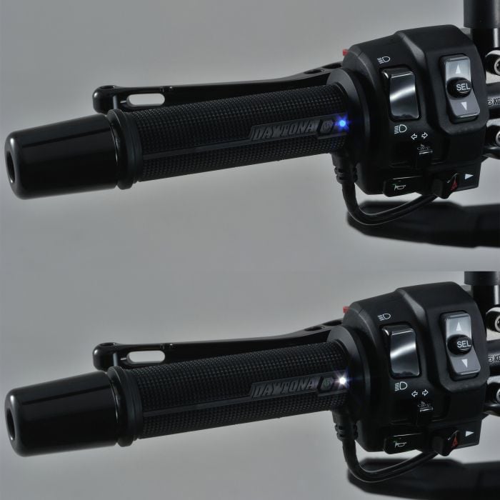 Premium Daytona heated grips – performance Japanese design. Daytona heated grips provide unrivalled heating performance in cold conditions, the Quick Heating function taking just four minutes. An integral switch on the left-hand grip enables easy operation and temperature adjustment when riding between the 4-Levels of heating. Fully intelligent operation by heat level memory and recall function. Only for use on 12V scooters and motorcycles.